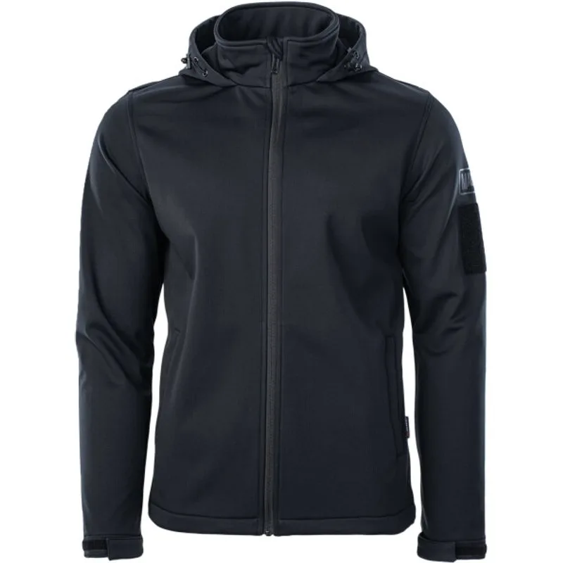 Materiaal: 94% Polyester, 6% Elastaan. Stof: Softshell, Stretch. Ontwerp: Logo. Stoftechnologie: Ademend, waterdicht, winddicht. Halslijn: Kapitein. Manchet: Haak en Lijn Riem. Mouwtype: Met lange mouwen. Afneembare kap, getapete naden. Eigenschappen motorkap: Opgegroeide motorkap, regelklep. Zakken: 2 zijzakken, rits, ID. Bevestiging: Volledige ritssluiting. Waterdichte classificatie: 8000mm. 1000g/m²/24hrs.