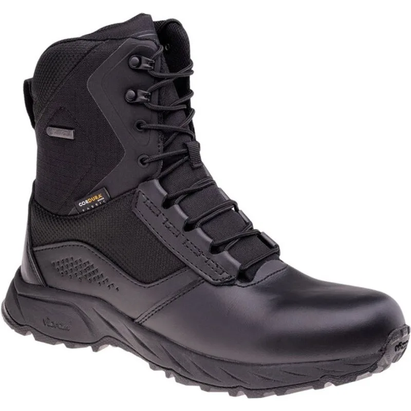 Bovenstuk: Cordura, volnerf Action leer, textiel. Voering: Gaas. Binnenzool: Hi-Poly, Mesh, PU-schuim. Buitenzool: MD, Rubber. 7 Ogen. Stof Technologie: Vibram Arctic Grip, Waterdicht. Treklipje. Platte Hak. Snit: Enkelhoog. Ontwerp: Logo, Tekst, Structuur. Teenstijl: Rond. Sluiting: Vetersluiting.