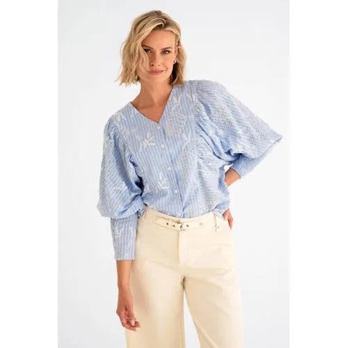 Maicazz & Zizo gestreepte blouse blauw broderie