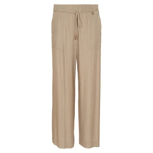 Deze beige dames broek van Maicazz & Zizo is een comfortabele basic voor elke dag, met een vrouwelijke look en een relaxte pasvorm. De lange, losse pijpen vallen soepel langs het been en de hoge taille met elastische band sluit prettig aan rond je middel. De effen beige kleur laat zich makkelijk combineren met tops, blouses en truien in allerlei tinten.Details die elke dag prettig maken Loose fit model met lange pijpen voor een ontspannen silhouet Hoge taille met elastische tailleband voor extra comfort en een mooie aansluiting Zakken voor en achter, aangevuld met sierzakken voor een verzorgde uitstraling Effen beige kleur, eenvoudig te combineren in zowel casual als nettere outfits Gemaakt van een soepele stof met viscose die zacht aanvoelt op de huidVan thuiswerkdag tot etentjeDeze broek past bij verschillende momenten op de dag. Combineer met een T-shirt en sneakers voor een relaxte look, of kies een blouse en instappers voor een meer geklede stijl. De elastische tailleband maakt de broek fijn om langer achter elkaar te dragen, bijvoorbeeld op kantoor of tijdens een dagje uit.Maicazz & Zizo: eigentijdse stijlMaicazz & Zizo staan voor eigentijdse damesmode met aandacht voor pasvorm en detail. De collecties sluiten aan op het dagelijks leven, met kleding die prettig zit en er verzorgd uitziet. Zo voeg je eenvoudig een stijlvol en draagbaar item toe aan je garderobe.Een comfortabele basisbroek die je gemakkelijk het hele seizoen door draagt.