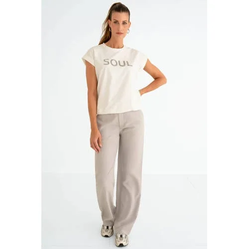 Fris, vrouwelijk en makkelijk te combineren, dit ecru dames T-shirt van katoen is een basic met subtiele details. Het model 'SUSE' van Maicazz & Zizo heeft een getailleerde pasvorm die langs het lichaam valt zonder strak te zitten. De zachte stof van 100% katoen voelt prettig aan op de huid en is geschikt voor dagelijks gebruik.Verzorgde details in een basic T-shirt Gemaakt van 100% katoen voor een zachte en ademende touch Getailleerde pasvorm voor een vrouwelijke uitstraling Kapmouwen met omslagdetail voor een accent bij de schouders Ronde hals, makkelijk te dragen onder een vest of blazer Elastische boord aan de onderkant voor een licht blousend effect Tekstprint aan de voorzijde als subtiel detail Ecru kleur die goed combineert met jeans, chino of rok Geen zakken voor een rustige uitstralingIdeaal voor iedere dagDit T-shirt past goed in een garderobe voor alledag. Het ecru sluit mooi aan bij lichte denim in het voorjaar, maar past ook onder een donker vest of een luchtige blazer. De elastische boord houdt de top op zijn plek, ook als je het T-shirt iets bloezend draagt op een hoge broek of rok.Maicazz & Zizo: stijlvolle items met aandacht voor detailMaicazz & Zizo staat bekend om draagbare mode met een vrouwelijke insteek. In de collecties komen comfortabele materialen samen met doordachte details en eigentijdse pasvormen. Zo kun je makkelijk combineren, of je nu kiest voor een casual dagoutfit of een nette look voor op kantoor.Een praktische basic die geschikt is voor zowel je werk- als weekendgarderobe.