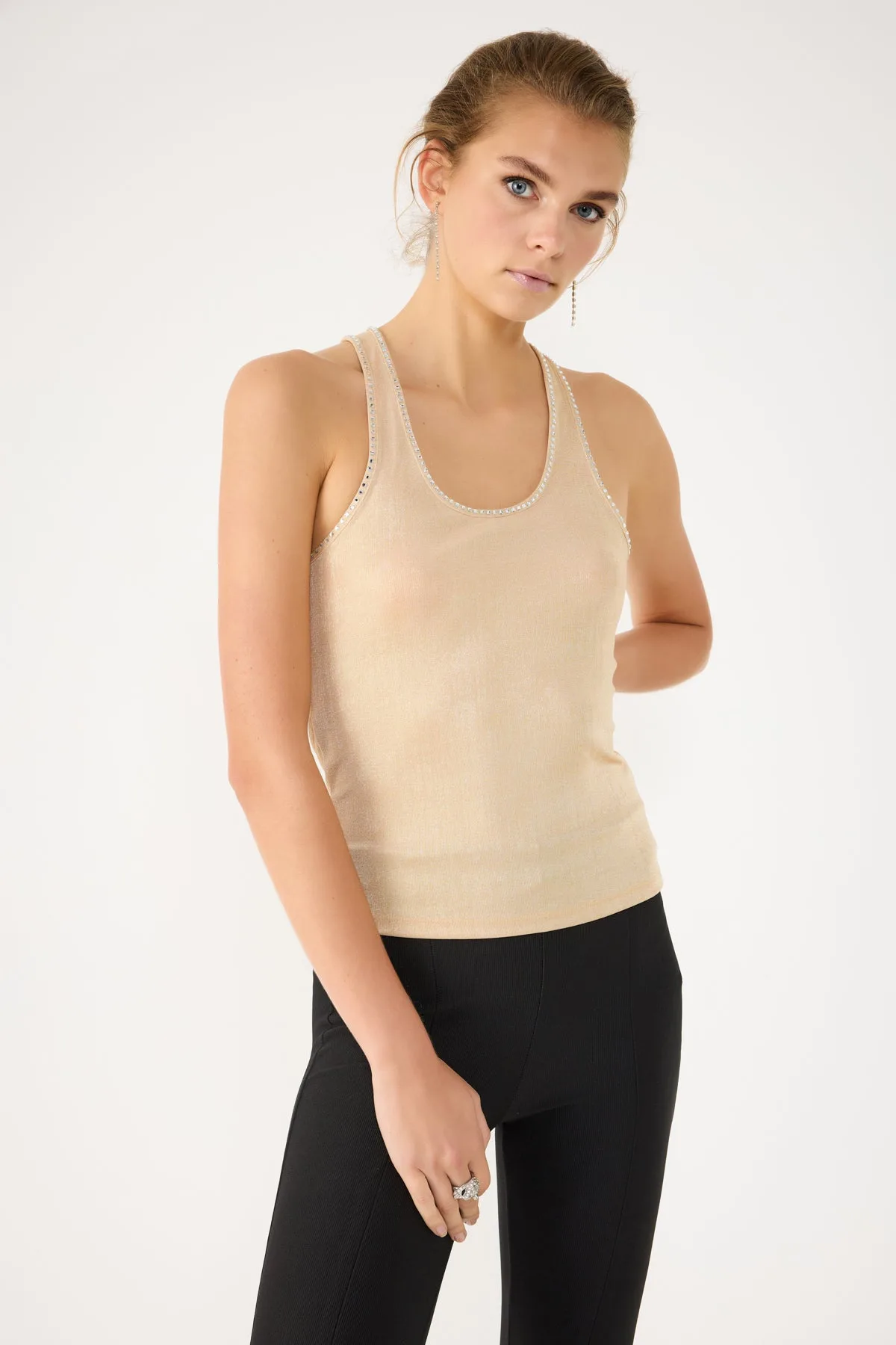 Design: Gevoerde zoom/rand; Materiaal: Jersey; Halstype: Ronde hals; Motief: Effen; Soort bandjes: Racerback; Details: Sierstenen; Extra's: Voelt zacht aan; Pasvorm: Slanke pasvorm; Armlengte: Mouwloos; Lengte: Normale lengte