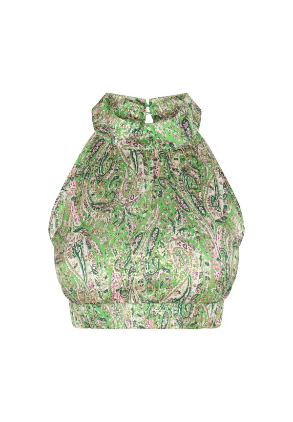 Design: Elastische taille/zoom, Keyholesluiting; Halstype: Opstaande kraag; Motief: Paisley; Soort bandjes: Haltermodel; Details: Cut-outs, Gedrapeerd; Extra's: All-over patroon; Pasvorm: Normale pasvorm; Armlengte: Mouwloos; Lengte: Korte pasvorm