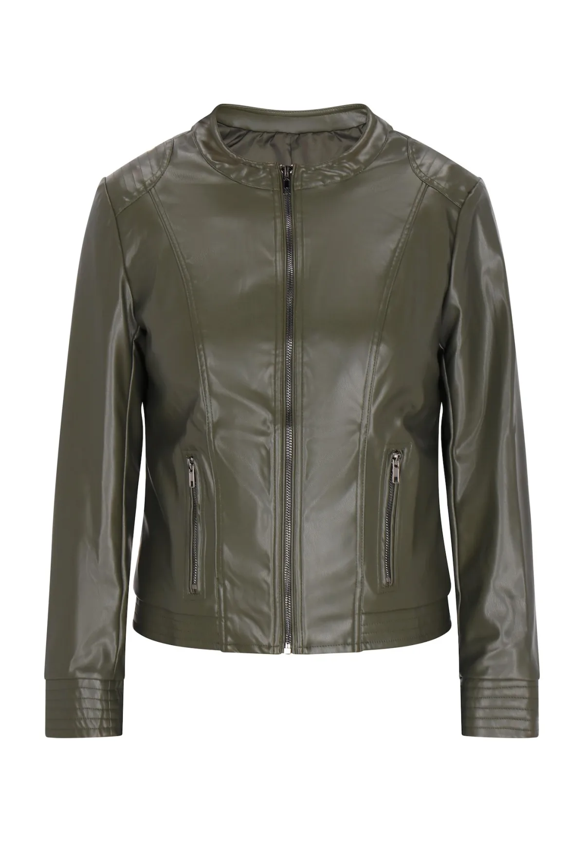 Design: Ritszakken aan de zijkant; Type sluiting: Ritssluiting; Type jas: Bikerjack; Voering: Licht gevoerd; Materiaal: Imitatieleder; Motief: Effen; Extra's: Gladde stof; Pasvorm: Slanke pasvorm