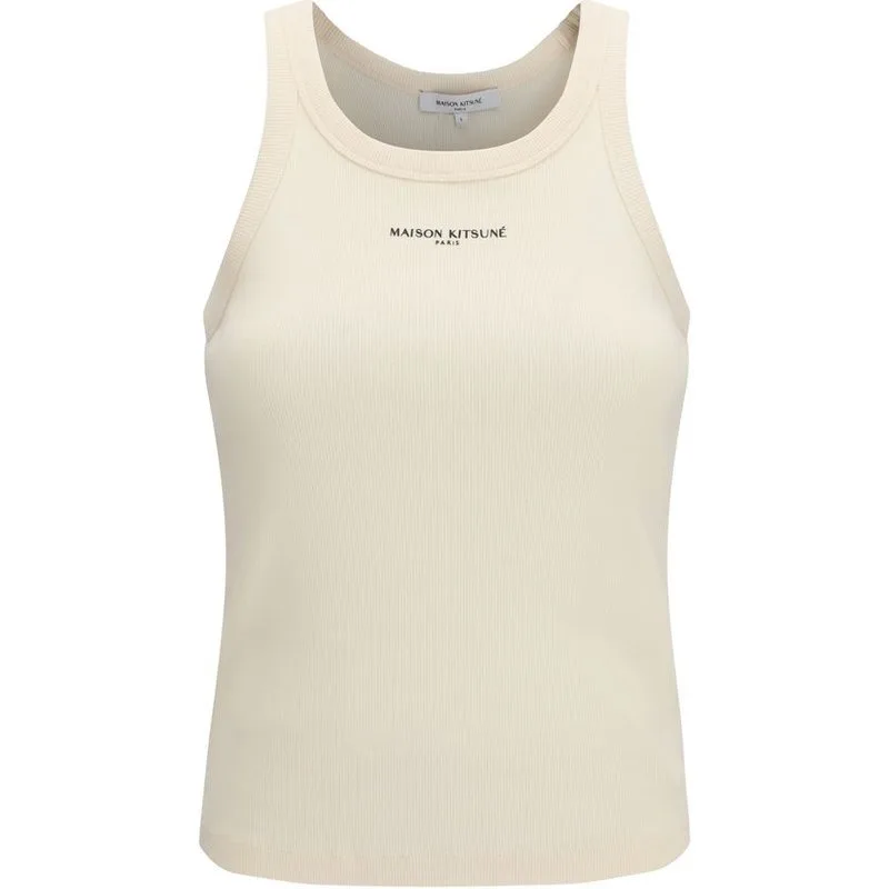 Maison Kitsuné Beiger Katoenen Mouwloos T-Shirt