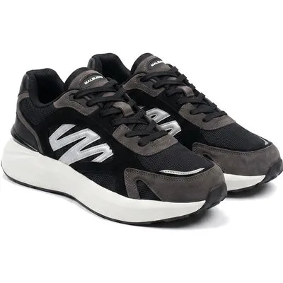 De Malelions Men Casual Suede Trainer in zwart/wit is een moderne schoen met een sportieve uitstraling. Het ontwerp valt op door de combinatie van verschillende materialen en het gebruik van zwart en wit.