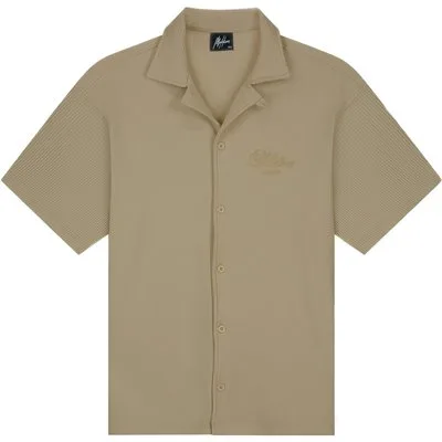 Malelions Ribbed Script Shirt Jongens Vrijetijds blouse Beige