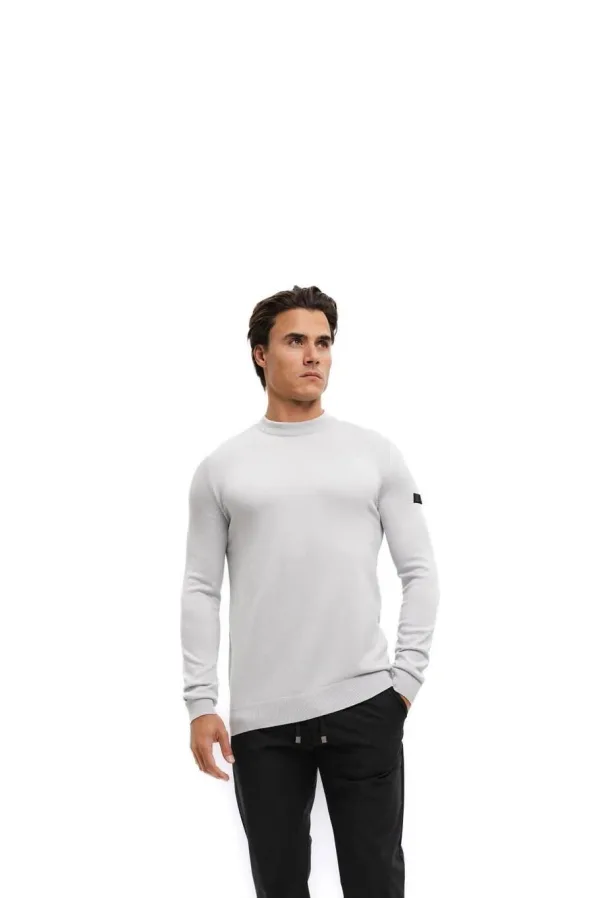 Specificaties: * Pasvorm: slim-fit; ronde hals * Manchetten: geribbelde, licht-elastische manchetten aan de mouwen en zoom * Kleur: grijs * Materiaal: 52% viscose - 28% polyamide - 20% elastaan