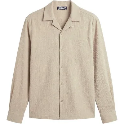 Malelions Men Emblem Seersucker Longsleeve Shirt | Light Taupe Prijzen