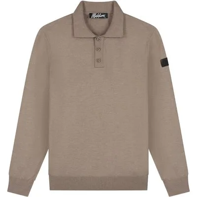 Malelions Men Knitted Longsleeve Polo | Taupe