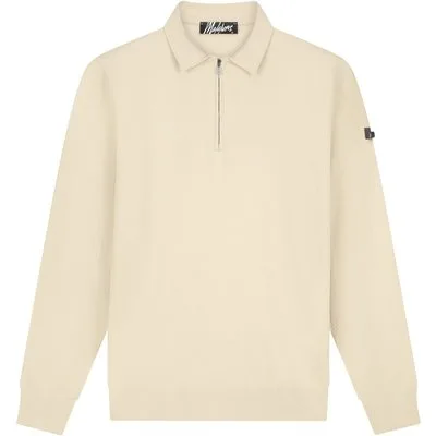 Malelions Men Knitted Longsleeve Zip Polo | Light Taupe