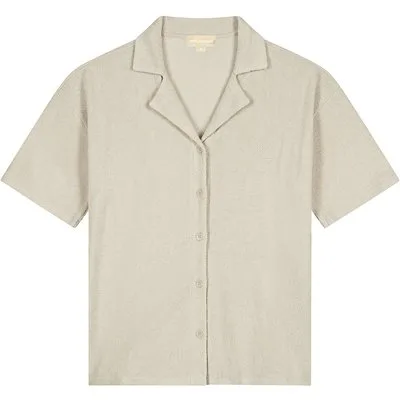 Het Malelions Women Emblem Bouclé Shirt in zandkleur biedt een verfijnde mix van comfort en een trendy urban flair. Vervaardigd van een hoogwaardige bouclé stof, heeft dit shirt een unieke textuur die zacht en luxueus aanvoelt. De regular fit pasvorm en de stijlvolle open kraag zorgen voor een ontspannen uitstraling, terwijl het subtiele logo op de borst een herkenbare touch geeft. De natuurlijke zandkleur en de kwaliteit van het materiaal maken dit shirt tot een veelzijdige toevoeging aan je dagelijkse garderobe.