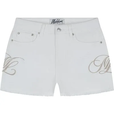 Malelions Women Emblem Denim Shorts | White Prijzen