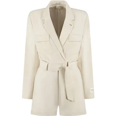 De Malelions Women Label Playsuit in zand is een elegante en veelzijdige one-piece voor elke gelegenheid. Dit playsuit heeft een chique blazer-stijl met een kraag en lange mouwen, gecombineerd met een comfortabel broekje. De taille wordt mooi geaccentueerd door het bijpassende strikceintuur, terwijl de borstzakken en het subtiele logo een stijlvolle finishing touch geven. De neutrale zandkleur zorgt voor een warme uitstraling die perfect te combineren is met hakken of sneakers.