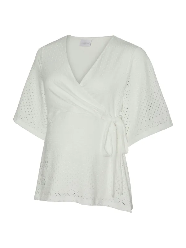 Blouse type: Blouseshirt; Design: Gevoerde zoom/rand, Om te knopen/binden; Materiaal: Gerecycled materiaal; Motief: Effen; Kraag: Zonder kraag; Details: Mesh, Wikkel design; Extra's: Op staal naden, Milieuvriendelijk geproduceerd; Borstvoedingsfunctie: Met borstvoedingsfunctie; Pasvorm: Normale pasvorm; Armlengte: Halve mouw; Lengte: Normale lengte
