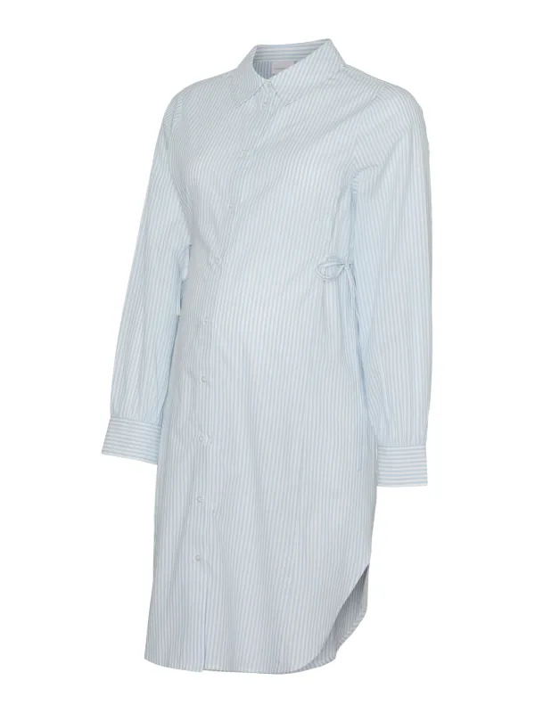 Specificaties: MAMALICIOUS Blousejurk ‘MLLETICIA LIA’ hemelsblauw / wit