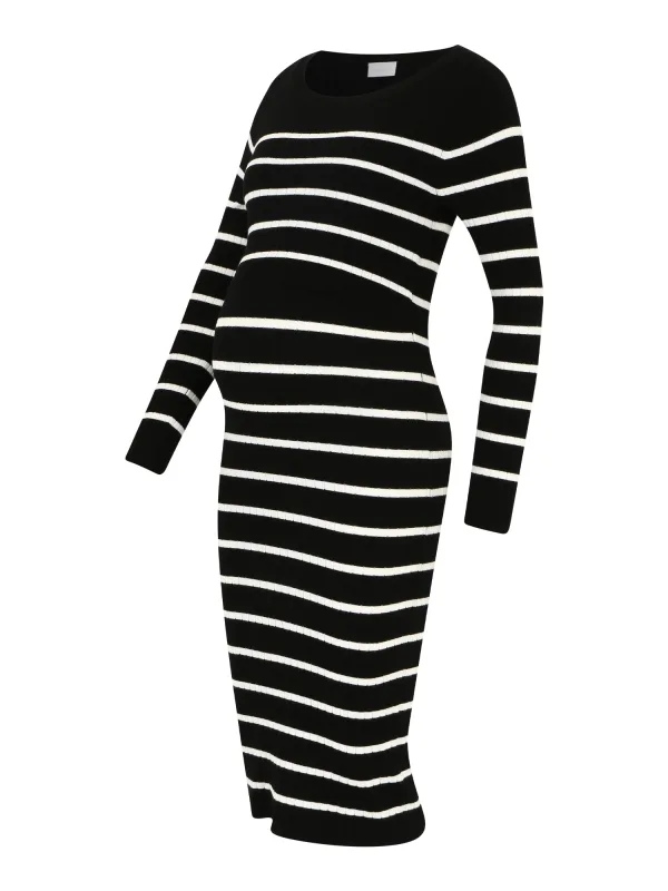 MAMALICIOUS Gebreide jurk ‘New Siv June’ zwart / offwhite