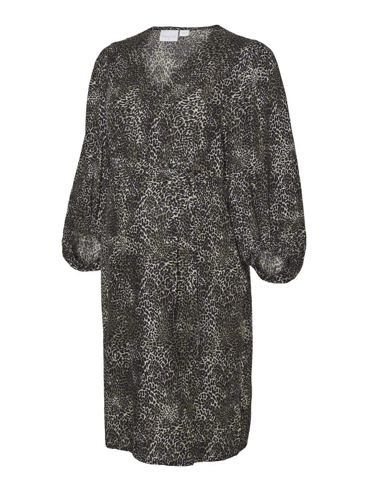 Specificaties: MAMALICIOUS Jurk ‘CHERRY’ aardetinten / greige / zwart