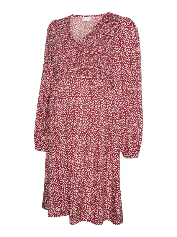 Design: Elastische taille/zoom; Type sluiting: Slip; Halstype: V-hals; Details: Gedrapeerd; Extra's: All-over patroon, Op staal naden; Borstvoedingsfunctie: Zonder borstvoedingsfunctie; Lengte: Knielengte; Pasvorm: Wijde pasvorm; Armlengte: Lange mouw