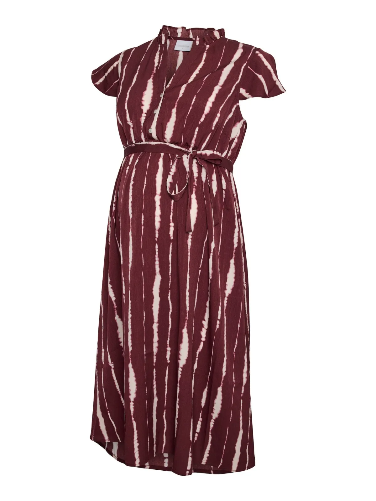 Specificaties: MAMALICIOUS Jurk ‘MLPali’ wijnrood / offwhite