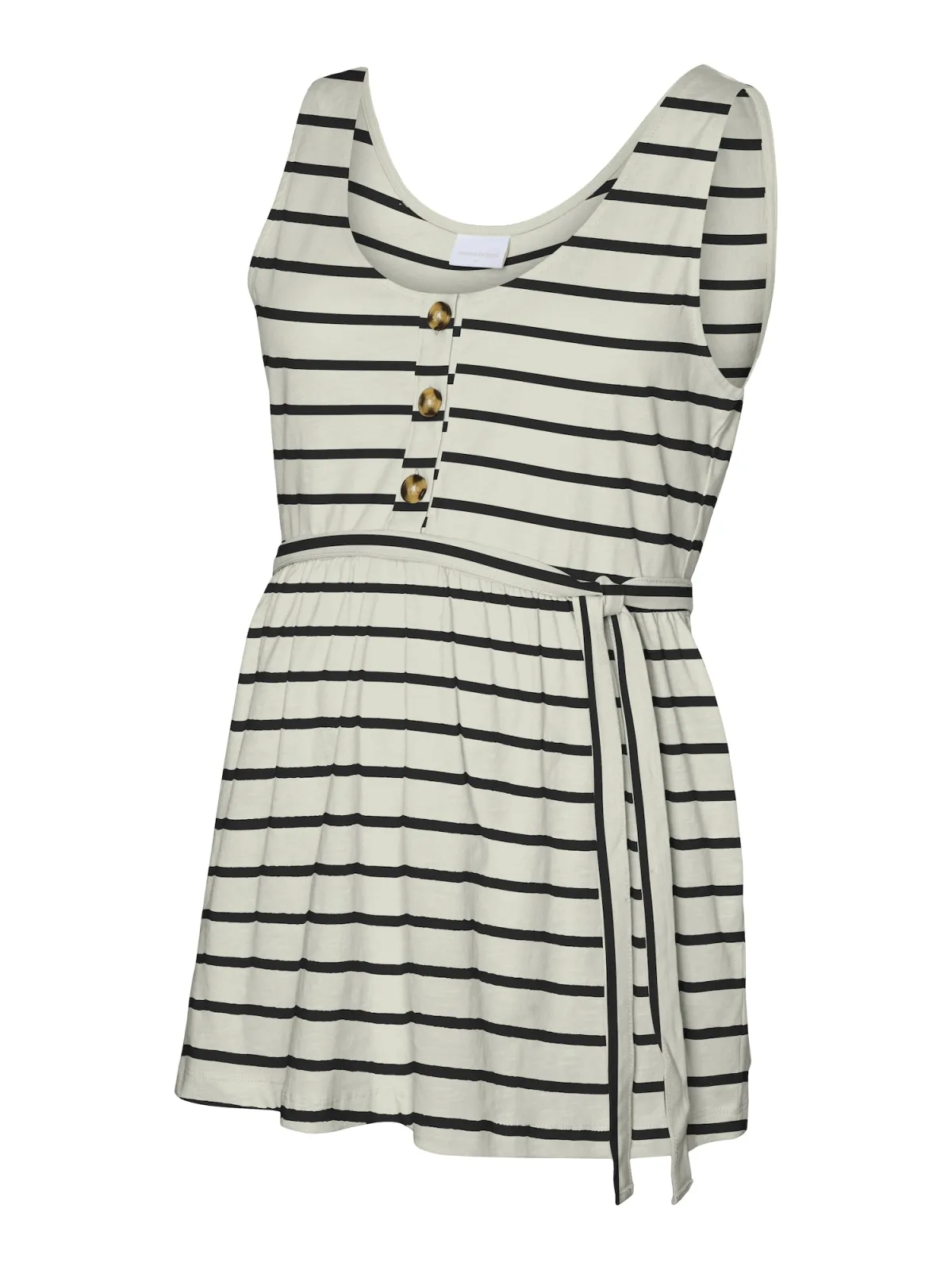 Design: Knop placket, Tailleriem; Materiaal: Jersey; Halstype: Henley hals; Motief: Gestreept; Soort bandjes: Brede bandjes; Details: Gedrapeerd; Extra's: All-over patroon, Voelt zacht aan; Borstvoedingsfunctie: Zonder borstvoedingsfunctie; Pasvorm: Normale pasvorm; Armlengte: Mouwloos; Lengte: Normale lengte