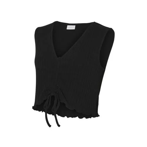 Deze zwarte mouwloze zwangerschapstop van MAMALICIOUS is een praktische basic voor iedere dag. De top heeft een V-hals en een cropped model, waardoor het model goed valt boven of op je zwangerschapsbroek of rok. Door het effen design is dit een item dat je eenvoudig combineert, van een ontspannen dag thuis tot een afspraak buiten de deur.Cropped model met rijgdetail Cropped lengte voor een moderne look die goed past bij hoge zwangerschapsbroeken en rokken Rijgdetail aan de voorkant voor een verstelbare pasvorm rond je groeiende buik Zachte, soepele stof met katoen en elastaan voor prettig draagcomfort Mouwloos model, ideaal voor het lente seizoen of onder een vest Effen zwarte kleur, makkelijk te combineren met verschillende stijlen Zonder sluiting, je trekt de top eenvoudig over je hoofd aan en uitVoor dagelijkse zwangerschapslooksDeze top komt uit de 'Daily' collectie, wat hem geschikt maakt voor alledaags gebruik. Combineer met een zachte zwangerschapsjeans en sneakers voor een casual outfit, of draag hem met een rok en een fijn vest voor een iets formelere look. De rekbare stof beweegt mee, zodat je je ook in de latere maanden van je zwangerschap comfortabel blijft voelen.MAMALICIOUS zwangerschapsmodeMAMALICIOUS richt zich op kleding die meegroeit met je zwangerschap, met aandacht voor pasvorm en comfort. De ontwerpen sluiten aan op actuele modetrends, zodat je je tijdens je zwangerschap gekleed voelt zoals je gewend bent. Met deze top haal je een praktisch basic item in huis dat je tijdens je zwangerschap vaak kunt dragen.Een comfortabele basis voor veelzijdige zwangerschapsoutfits.