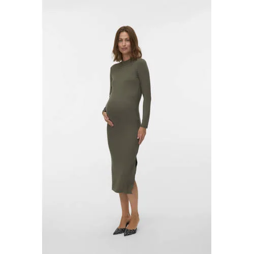 MAMALICIOUS zwangerschaps maxi jurk rib gebreid groen Prijzen