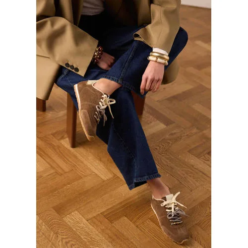 Manfield - Dames - Bruine sude sneakers met dubbele vetersluiting...
