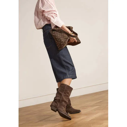 Manfield – Dames – Donkerbruine suède slouchy enkellaarsjes –