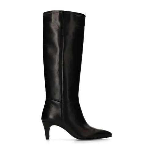 Manfield – Dames – Zwarte hoge leren laarzen met hak – Prijzen
