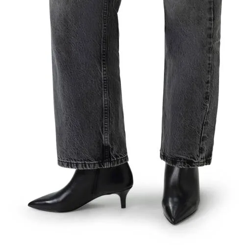 Manfield – Dames – Zwarte leren enkellaarsjes met hak – Prijzen