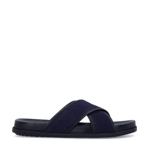 Manfield – Heren – Donkerblauwe suède slippers – Prijzen