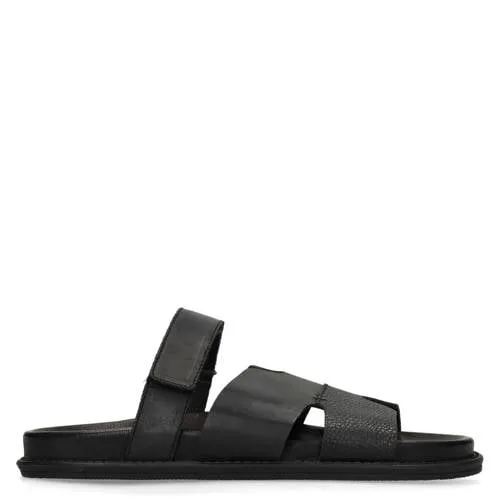Manfield – Heren – Zwarte leren slippers – Prijzen