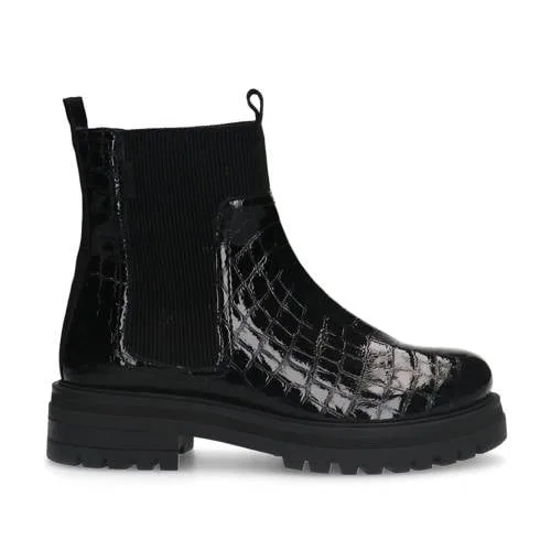 Manfield lakleren chelsea boots met crocoprint zwart Prijzen