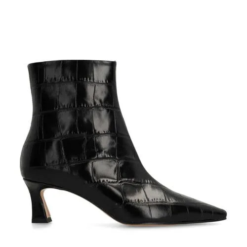 Manfield leren enkelboots met crocoprint zwart Prijzen