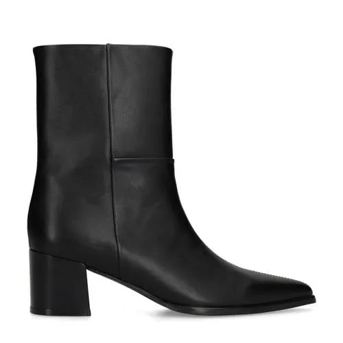 Deze enkellaars van Manfield is gemaakt van leer en heeft een ritssluiting. De voering is van leer, de hak heeft een blokhak. Je draagt dit model makkelijk elke dag.