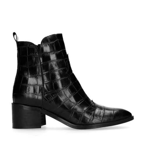 Manfield - Dames - Zwarte enkellaarsjes met crocoprint - Maat...