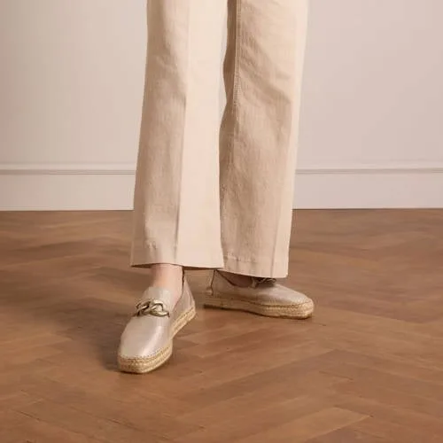 Manfield - Dames - Goudkleurige leren espadrilles met gouden chain...
