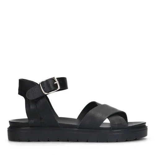 Deze sandaal voor dames van Manfield uit de Manfield-collectie heeft een bovenwerk van leer. Het model is voorzien van een gespsluiting en een platte zool met een hoogte van 3 cm. De sandaal heeft een voering van leer en een vast voetbed.