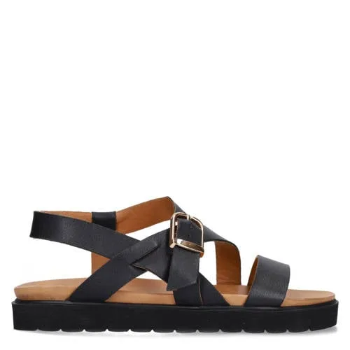 Deze zwarte leren sandalen met plateauzool van Manfield geven je zomerse outfits een rustige, moderne basis. De effen zwarte kleur maakt combineren heel eenvoudig en de platte zool met subtiel plateau van 3 cm zorgt voor een fijne hoogte zonder hakgevoel. De band rond de enkel met gespsluiting houdt de sandaal netjes op zijn plek, terwijl het zachte leer zich prettig naar je voet vormt.Belangrijke kenmerken op een rij Effen zwarte sandaal voor dames, passend bij veel stijlen Bovenkant, voering en binnenzool gemaakt van leer voor een luxe uitstraling Platte plateauzool van 3 cm voor een lichte verhoging en comfortabele steun Rubberen buitenzool voor grip op diverse ondergronden Gespsluiting rond de enkel voor een verstelbare en veilige pasvorm Normale leest, geschikt voor de meeste voetvormenVoor werk, stad en vakantieDeze sandalen passen net zo goed onder een luchtige jurk als onder een cropped jeans. Ideaal voor een dagje stad, een etentje op vakantie of gewoon naar het werk op warme dagen. De combinatie van het gladde leer en de platte zool maakt het een sandaal waar je gemakkelijk de hele dag op loopt.Manfield: schoenen met aandachtManfield richt zich op schoenen met een verzorgde uitstraling en doordachte details. Materialen en afwerking worden zorgvuldig gekozen, zodat je sandalen krijgt die er stijlvol uitzien en prettig dragen. Met deze leren sandalen kies je voor een betrouwbaar paar dat seizoen na seizoen een vaste plek in je garderobe kan krijgen.Een tijdloze sandaal die je zomerse looks rustig en toch opvallend compleet maakt.