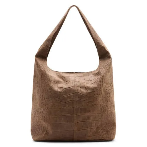 Deze taupe leren schoudertas met crocoprint van Manfield is een ruime shopper voor elke dag. De structuur van de dierenprint geeft de tas een moderne, vrouwelijke uitstraling, terwijl het formaat genoeg plek biedt voor al je dagelijkse essentials. De tas sluit volledig met een ritssluiting, zodat je spullen veilig opgeborgen blijven onderweg.Ruime shopper met handige indeling Groot formaat van 44x33x16 cm, geschikt voor grotere items zoals een tablet, notitieboek of make-up etui Gemaakt van 100 procent leer voor een stevige tas die mooi in model blijft Veilige ritssluiting over de gehele bovenkant, zodat je eigendommen goed afgesloten zijn Vaste schouderbanden die comfortabel over je schouder vallen Neutrale taupe kleur met crocoprint, gemakkelijk te combineren met verschillende outfitsVoor werk, stad en dagelijks gebruikOf je nu naar kantoor gaat, de stad in gaat of een volle dag gepland hebt, deze shopper biedt de ruimte die je nodig hebt. Door het grote hoofdvak houd je alles overzichtelijk bij elkaar en pak je snel wat je zoekt. De tas hangt ontspannen aan je schouder en is geschikt voor zowel casual als meer geklede momenten.Manfield als vertrouwde keuzeManfield staat bekend om tijdloze designs en aandacht voor materialen. Deze tas sluit daar goed bij aan door het gebruik van leer en de doordachte vormgeving. Je kiest voor een accessoire dat past bij een verzorgde, moderne stijl.Een praktische, ruime schoudertas die je moeiteloos door je drukke dagen begeleidt.