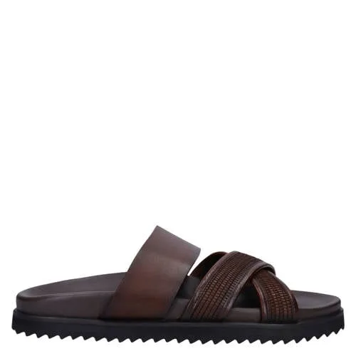 Manfield leren slippers donkerbruin