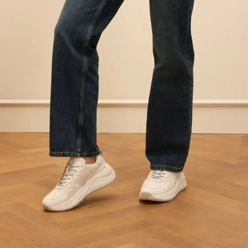 Deze sneaker van Manfield is gemaakt voor dames. De buitenkant combineert leer en textiel en heeft een chunky hakvorm. Voorzien van vetersluiting en een leren voering, perfect voor een comfortabele en stijlvolle look.