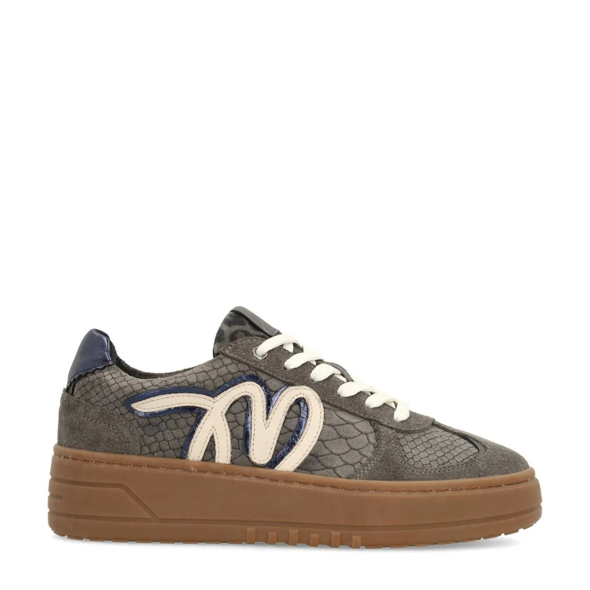 Deze sneaker van Manfield heeft een buitenkant van suède en een plateauzool. De voering is gemaakt van leer, de sneaker heeft een vetersluiting en is geschikt voor dames.