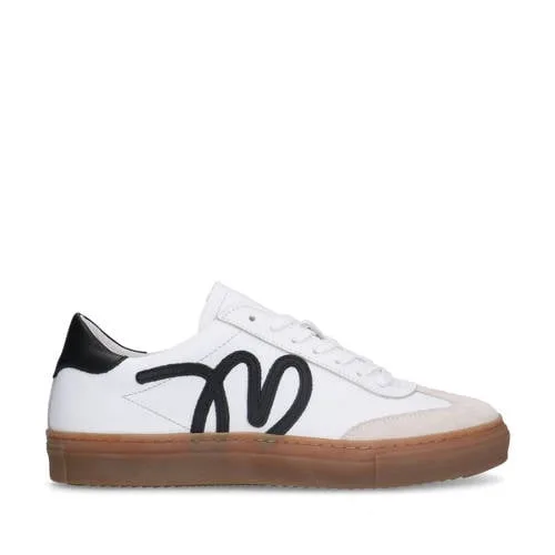 Manfield - Dames - Witte leren sneakers met zwarte details...
