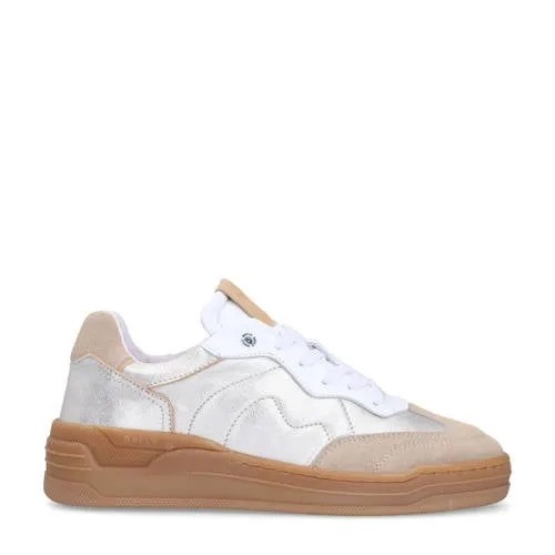 Manfield leren sneakers zilver/beige