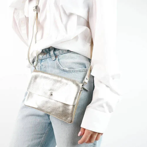 - Bij wehkamp.nl kun je Manfield metallic leren crossbody tas goudkleurig kopen voor slechts €59,99