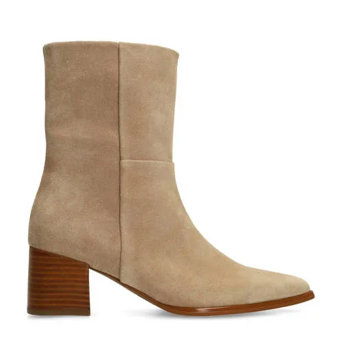 Manfield suède enkellaarzen beige