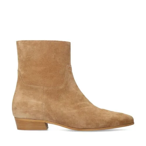 Deze enkellaars van Manfield voor dames heeft een suède buitenkant. Het comfortabele hakontwerp zorgt ervoor dat je stijlvol en met gemak overal naartoe kunt. De laars is voorzien van een handige ritssluiting aan de zijkant.