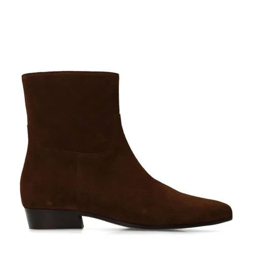 Manfield suède enkellaarzen donkerbruin Prijzen